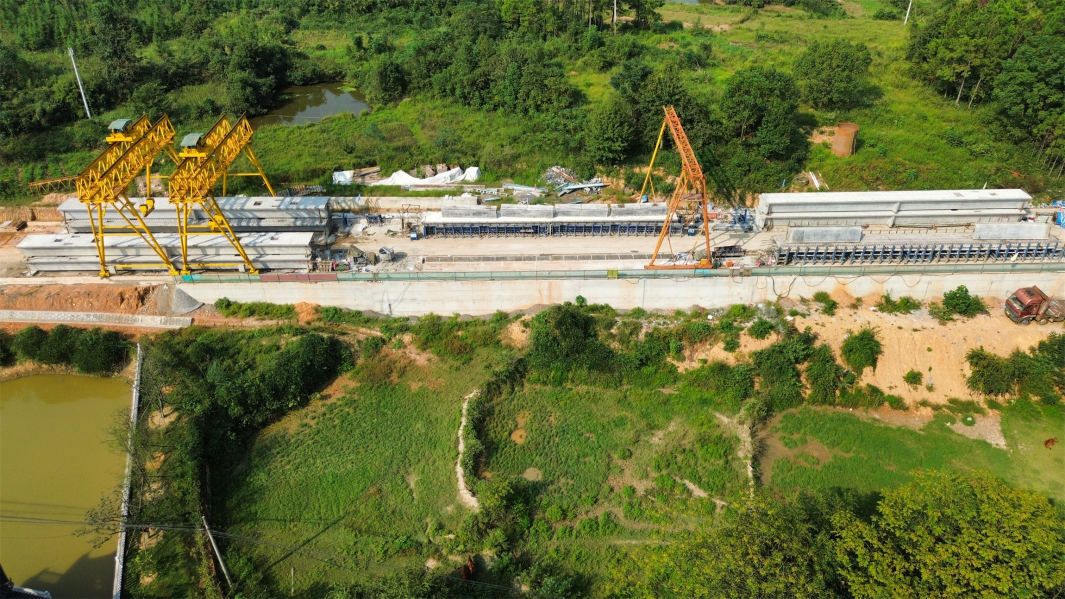 东安县调源“渡改桥”工程是改善区域交通条件、保障群众安全出行的重要民生工程,全长1.685公里,其中湘江大桥作为整个项目的“咽喉”与关键控制性工程,全长536米,共分为三联,前两联采用4×30+4×30米预制箱梁结构,第三联则采用技术难度更高的80+130+80米现浇箱梁结构,全桥共需架设30米预制箱梁32片。目前,项目团队已完成9片箱梁预制,按照施工计划,将在今年内完成全部箱梁的预制与架设任务,为后续桥面铺装、附属设施施工等工序争取宝贵时间,全力保障项目按计划推进,早日实现通车目标。