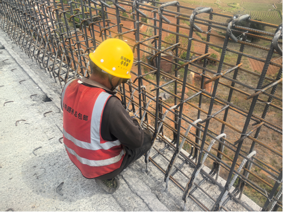 室内授课结束后,参训人员前往刘家桥特大桥架梁施工现场进行实地学习。现场教学围绕架桥机结构部件、架梁工艺流程、安全管控要点及日常巡查要求展开,并重点解读了"梁板架设安全口诀",将理论知识与实操技能紧密结合。在刘家桥特大桥护栏标准化施工现场观摩交流过程中,岳阳路桥第三总包部管理人员详细介绍了护栏施工标准化流程,从原材料选择加工、现场施工工艺到质量保障措施进行了系统分享,助力桂新高速护栏标准化施工高效推进。具体措施包括:严格把控护栏钢筋焊接与绑扎质量;浇筑混凝土前反复复核模板线形及顶面高程;通过优化配合比与改进振捣工艺双重控制混凝土外观质量;拆模后及时进行切缝处理并覆盖洒水养护,以预防温度收缩裂缝等。